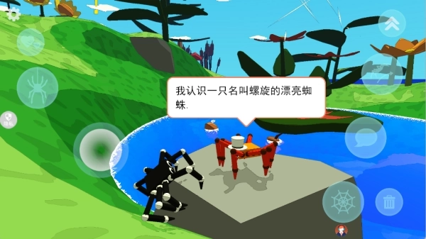 2、打造轻松治愈的游戏氛围,蜘蛛的动作设计与场景质感都充满可爱气息,让玩家沉浸式体验萌系沙盒冒险的欢乐。