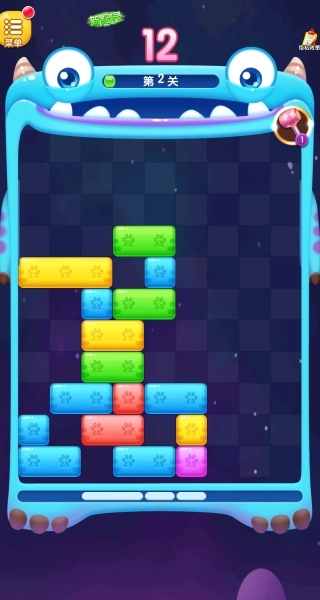 1、进入关卡后,首先观察底部待放置的方块,通过滑动操作将其移入网格区域,优先填充某一行的空缺位置,当整行被方块完全填满时即可触发消除效果。