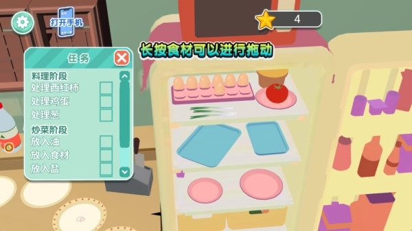 4、长按食材即可对其进行移动操作,玩家需依据任务要求来处理食材,以防出现烹饪顺序错误的情况。