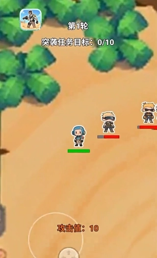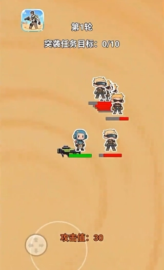 1、创建角色后就能开启冒险之旅,借助虚拟摇杆来操控移动方向,点击射击按钮即可攻击周围的敌人。