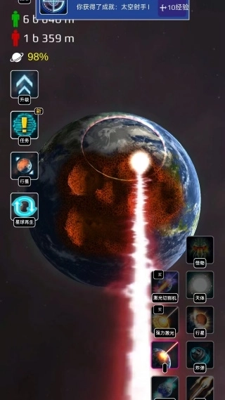 3、装备库涵盖常规爆炸物、能量武器、天体级装置三大类别共数十种装备,可满足多样化的毁灭需求