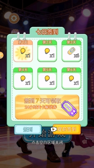 2、每天登录签到都能获取关卡解锁券,通过积累这类道具资源,就能解锁更多的挑战关卡和搭配素材库。