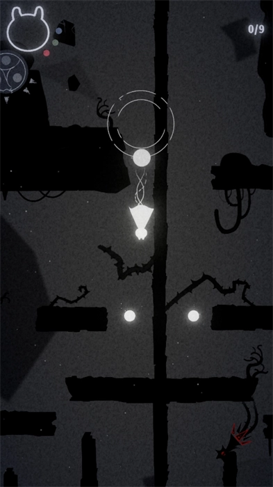 2、根据游戏内呈现的黑白场景,依照玩法的操作步骤,通过滑动屏幕来移动浮光,收集所有替代光源的小球,以此达成指定的目标任务数量。