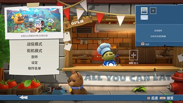 1、完成游戏安装后,双击运行"Overcooked All You Can Eat.exe"程序,就能直接进入游戏界面开始游玩。