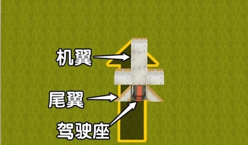 3、接下来我们取出机翼,制作飞机的头部,冒险家们可以参照截图来制作: