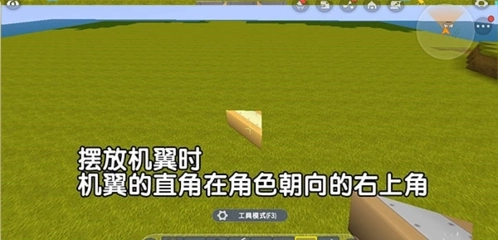 7、尾翼的摆放方式需要大家留意,在摆放机翼时要注意角色的朝向,机翼的直角部分应处于角色朝向的右上角位置。