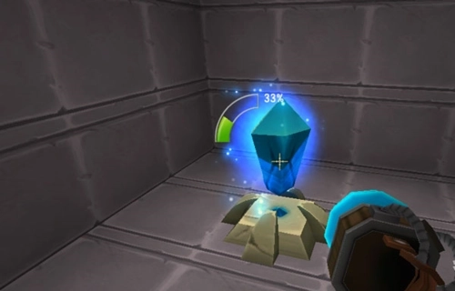 4、里面有个形似水晶的物体,我们能够用钻头来挖掘它。