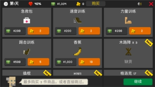1、进入游戏前先在商店购买装备,因为小编金币没有赚够,所以最多只能购买2件商品,新手开篇建议先购买踢击训练、香蕉皮和速度训练,这有利于接下来游戏的胜利。