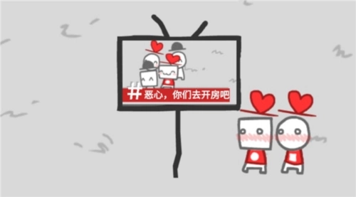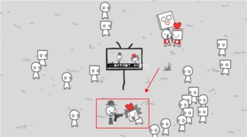 8、人们吵起来的时候,那对情侣会出现呼吁大家不要争吵,要爱好和平,但没人理他