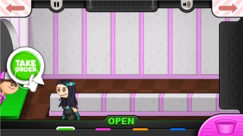 5、完成教程后,这时候来了一个顾客,我们点击“TAKEORDER”接受她的点餐请求