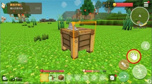 3、星球上有着各种资源,比如鸡、牛、羊等各种动物,不过要提醒一下,小伙伴们千万不要随意去挑衅大鹅。同时,我们在星球上也可以采集到各种资源,其中原木是最容易采集到的一种基础资源,而原木的采集也是非常简单,只要控制角色对木材不停攻击,就可以获得原木方块了。