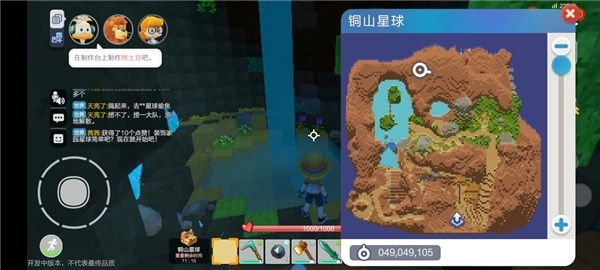 2、我们在进入自己的星球后,可以通过屏幕上的摇杆按钮来操控角色移动,可以自行转动视角,屏幕右上方的小地图则可以随时查看自身位置。