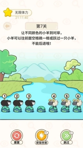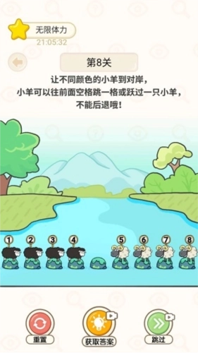 谁先过河,谁后过河,虽然看似简单,实则一不小心就陷入游戏标题的陷阱之中,脑洞大开的通关方式,不断的燃烧你的大脑持续头脑风暴吧。