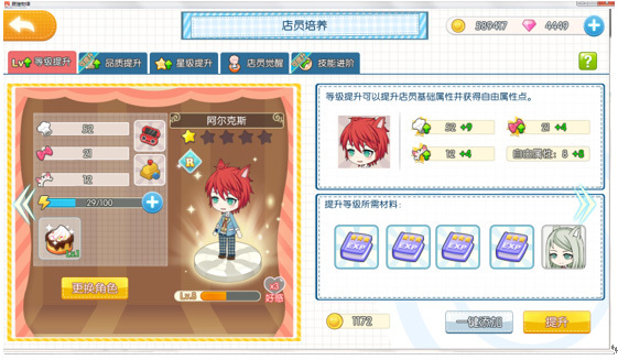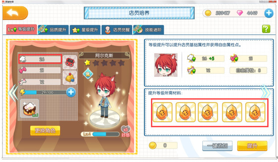 提升等级(可通过经验书、R卡达成),获取厨艺曜石(每一个曜石可增加一点厨艺值),以及分配自由属性(升级时会获得一定自由属性,后期还能借助回溯药水对其重新分配)