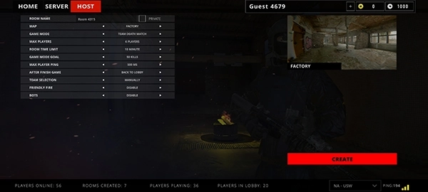 1、在完成代号真实联机版的安装并进入主界面后,点击屏幕上的“host”选项,准备创建房间;