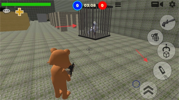 1.您得借助虚拟摇杆来操控小熊移动,利用射击按键完成瞄准攻击,还能一键切换各类武器。