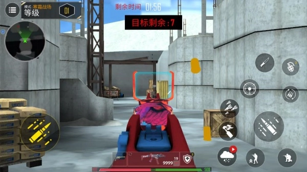 3、进入战场后操控角色移动探索地图,搜寻散落各处的武器与资源,对目标进行精准射击,与此同时留意任务进度和剩余时间。