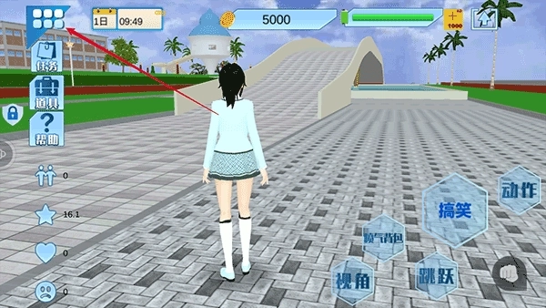 4、在主菜单中,你可以自由选择前往不同场景执行任务。参与活动越频繁,角色能力成长越快,校园影响力也随之提升。